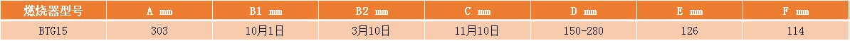 BTG15百得燃氣燃燒器外形尺寸表: