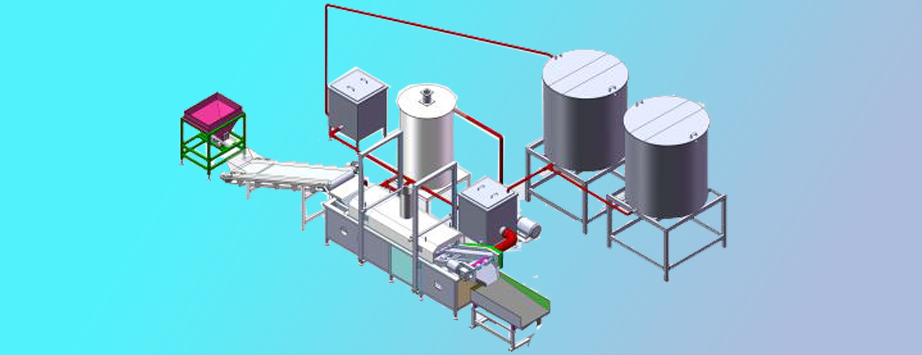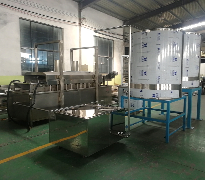 油炸機(jī)組成:隧道式油炸機(jī)、粗濾機(jī)、精濾機(jī)、循環(huán)油泵、儲(chǔ)油罐2臺(tái)、外置加熱器(燃油、燃?xì)庑团渲茫?、控制部分組成。